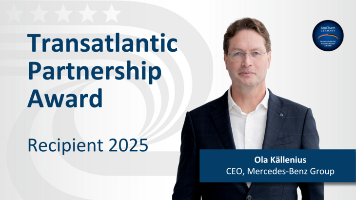 For 2025, a distinguished jury chaired by AmCham Germany President Simone Menne has selected Ola Källenius, CEO of Mercedes-Benz Group, as the award recipient. He will receive the TAPA in-person on May 27, 2025.
